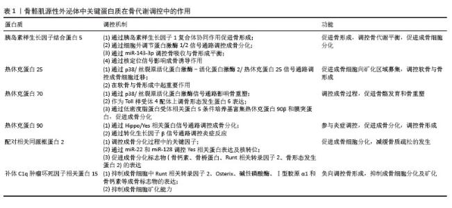 2.3.1 胰岛素样生长因子结合蛋白5 骨骼肌源性外泌体含有多种生物活性因子,在肌肉与骨的相互作用中发挥重要作用。其中,胰岛素样生长因子1及其结合蛋白家族成员在骨代谢调控过程中尤为关键。研究发现,C2C12成肌细胞衍生的骨骼肌源性外泌体中含有信号转导蛋白——胰岛素样生长因子结合蛋白5,这一蛋白在骨骼中的含量随年龄增加而下降[57]。在肢端肥大症患者中,骨小梁骨的微型计算机断层扫描结果和生物力学能力均表现出下降趋势,而这一变化与血清中胰岛素样生长因子结合蛋白5水平呈正相关[58]。在动物实验中,胰岛素样生长因子结合蛋白5已被证明能够诱导局部骨形成,特别是在小鼠和大鼠模型中,胰岛素样生长因子结合蛋白5在骨消耗期显著增加,且呈剂量依赖性[59]。单独使用胰岛素样生长因子1或胰岛素样生长因子结合蛋白5并未显著改善骨量,而胰岛素样生长因子1与胰岛素样生长因子结合蛋白5联合使用则明显增强股骨和胫骨的皮质厚度、面积以及矿物质密度,提示胰岛素样生长因子结合蛋白5可能通过骨膜作用促进骨形成,这进一步强调胰岛素样生长因子结合蛋白5在胰岛素样生长因子1信号调控中的协同作用。此外,胰岛素样生长因子结合蛋白5在人骨髓间充质干细胞早期成骨分化过程中显著增加,表明其在成骨分化过程中发挥重要作用。实验表明,过表达胰岛素样生长因子结合蛋白5促进细胞外调节蛋白激酶1/2信号通路激活,进而促进成骨分化过程,而沉默胰岛素样生长因子结合蛋白5表达则抑制这一现象,表明胰岛素样生长因子结合蛋白5可能通过细胞外调节蛋白激酶1/2信号通路调控成骨细胞的分化和功能[60]。值得注意的是,富含miR-143-3p的外泌体能够沉默胰岛素样生长因子结合蛋白5的表达,从而扰乱成骨-破骨细胞平衡,导致牙周骨的破坏[61],这一发现揭示胰岛素样生长因子结合蛋白5 在骨吸收与骨形成动态平衡过程中的重要性。胰岛素样生长因子结合蛋白5 还可通过核定位信号影响生物学功能。研究发现,胰岛素样生长因子结合蛋白5的核定位信号缺失会阻止其进入细胞核,消除其对牙髓间充质干细胞的促进作用[62]。这种核定位的丧失显著削弱胰岛素样生长因子结合蛋白5通过c-Jun氨基末端激酶和细胞外调节蛋白激酶信号通路对牙髓间充质干细胞的成骨诱导作用,表明胰岛素样生长因子结合蛋白5的核定位可能是其调控成骨分化的关键因素。 综上,胰岛素样生长因子结合蛋白5作为骨骼肌源性外泌体中的关键因子,在成骨调控和骨代谢平衡中发挥重要作用,其通过胰岛素样生长因子1复合体协同作用、细胞外调节蛋白激酶1/2介导的信号通路、miR-143-3p调控及核定位机制等多个分子机制影响骨形成和修复过程。尤其是在骨代谢紊乱状态下,胰岛素样生长因子结合蛋白5可能通过调节骨膜作用、成骨细胞分化及骨-破骨细胞动态平衡,展现出作为治疗骨质疏松症及骨损伤的潜在靶点的应用前景。 2.3.2 热休克蛋白 (1)热休克蛋白的调控机制:热休克蛋白在细胞的应激反应和蛋白质稳态中发挥着重要作用,特别是在骨代谢和成骨过程中。热休克蛋白作为分子伴侣,不仅调控蛋白质折叠、稳定性和降解,还能通过调控多个信号通路影响骨骼的发育、重塑和修复。研究表明,热休克蛋白25、热休克蛋白70和热休克蛋白90在C2C12成肌细胞衍生的骨骼肌源性外泌体中富集,并在成骨细胞分化过程中发挥关键作用。热休克蛋白不仅是细胞应激反应的重要调节因子,还在骨形态发生蛋白信号通路、Hippo/Yes相关蛋白信号通路及转化生长因子β介导的成骨调控机制中发挥重要功能。 热休克蛋白25在骨代谢过程中通过p38/丝裂原活化蛋白激酶-活化蛋白激酶2/热休克蛋白25信号通路调控成骨细胞迁移。研究发现,在骨形态发生蛋白2处理的骨髓间充质干细胞中,热休克蛋白25可促进成骨细胞向矿化区域募集,而不依赖于细胞分裂控制蛋白42或p21激活激酶活性,提示热休克蛋白25可能与骨形态发生蛋白信号通路的调节密切相关[63]。此外,研究发现成人长骨生长板以及喉和气管软骨中的肥厚软骨细胞中有热休克蛋白25免疫反应性。静息期或增殖期的软骨细胞均未表现出热休克蛋白25免疫反应性。在胚胎下颌骨中,Meckel软骨前部和中间部的静止和增殖软骨细胞从妊娠第12天到第15天显示出热休克蛋白25免疫反应性,而后部的软骨细胞没有免疫反应性;在妊娠第16天后,Meckel软骨中的整体热休克蛋白25免疫反应性强度显著降低,并且在位于Meckel软骨退化部分的肥大软骨细胞中没有检测到免疫反应性。将热休克蛋白25 mRNA的反义寡核苷酸应用于第10天胚胎下颌外植体的培养基上,抑制了Meckel 软骨前部和中部的发育[64],进一步验证热休克蛋白25在软骨与骨形成中的重要作用,但这一过程与生长发育的具体时间有关。 热休克蛋白70作为一种分子伴侣,协调蛋白质的折叠与稳态,对于骨骼发育具有重要作用。研究发现,热休克蛋白70抑制剂通过成骨细胞中的p38丝裂原活化蛋白激酶信号通路,促使前列腺素E1刺激下的白细胞介素6合成,进一步影响骨重塑[65]。此外,热休克蛋白70还作为内源性天然Toll样受体4的配体,能够上调骨形态发生蛋白6的表达,从而促进成骨过程。溶酶体关联膜蛋白3过表达则通过释放热休克蛋白70,激活Toll样受体4信号通路,进一步影响骨细胞功能和骨骼代谢[66]。 热休克蛋白90在成骨