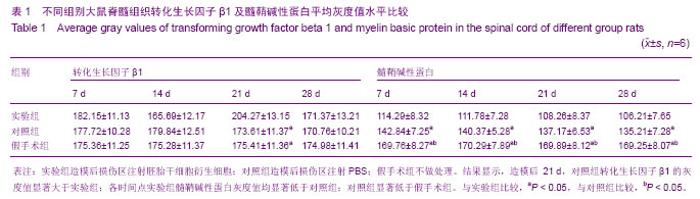 | [1] 徐乐勤,丁道芳,李晓锋,等.胚胎干细胞移植治疗脊髓损伤的研究进展[J].中国康复理论与实践,2011,17(1):51-53.[2] Vadivelu S, Platik MM, Choi L,et al. Multi-germ layer lineage central nervous system repair: nerve and vascular cell generation by embryonic stem cells transplanted in the injured brain. J Neurosurg.2005;103(1):124-135.[3] Basso DM,Beattie MS,Bresnahan JC.A sensitive and reliable locomotor rating scale for open field testing in rats.J Neurotrauma.1995;12(1):1-21.[4] 巴迎春,范艳,王金德,等.TGF-β1和CNTF在大鼠移植神经干细胞后的损伤脊髓中的表达[J].昆明医学院学报,2012,33(3):1-7.[5] 王小莲,曾文泓,王婷,等.微囊化异种坐骨神经组织细胞移植脊髓损伤大鼠核因子κB的表达[J].中国组织工程研究与临床康复, 2010,14(25):4619-4622.[6] 雷德强,赵洪洋,张方成,等.白介素-10对脊髓损伤后炎症影响的研究[J].山东医药,2008,48(4):6-7. [7] 廖维宏,张光铂. 进一步加强脊髓损伤修复研究[J].中国脊柱脊髓杂志,2003,13(9):517-519. [8] Suzuki H, Taguchi T, Kato Y, et al.Transplantation of neurospheres derived from bone marrow stromal cells promotes neurological recovery in rats with spinal cord injury.Med Mol Morphol.2011;44(3):131-138.[9] Penkala K,Kawa M,Baumert B,et al.Functional improvement of injured retina following the adjuvant stem cellbased therapy.Preliminary report.Klin Oczna.2011;113(46):117-121.[10] Keski-Oja J, Koli K, Melchner H. TGF-beta activation by traction? Trends Cell Biol. 2004;14(12): 657-659.[11] 李云,彭春,王廷华.嗅鞘细胞移植脊髓全横断损伤大鼠大脑皮质运动区转化生长因子β表达的影响[J].中国组织工程研究与临床康复,2011,15(19):3534-3537.[12] 贾赤宇,陈璧.TGFβ1对瘢痕形成的影响[J].中华整形烧伤外科杂志,1999;15(1):72-73.[13] 周健,张富国,潘寒松,等. TGF-β蛋白在急性脊髓损伤大鼠中的研究[J].医学研究杂志,2008,37(8):31-33.[14] Lane MA, Truettner JS, Brunschwig JP, et al.Age-related differences in the local cellular and molecular responses to injuryin developing spinal cord of the opossum, Monodelphis domestica.Eur J Neurosci. 2007;25(6):1725-1742.[15] Martinou JC,Le Van Thai A,Valette A,et al.Transforming growth factor beta 1 is a potent survival factor for rat embryo motoneurons in culture. Brain Res Dev Brain Bes. 1990;52 (1-2): 175-181.[16] O'Brien MF, Lenke LG, Lou J, et al. Astrocyte response and transforming growth factor-beta localization in acute spinal cord injury. Spine. 1994;19(20):2321-2329.[17] Kim JH, Min KJ, Seol W, et al. Astrocytes in injury states rapidly produce anti-inflammatory factors and attenuate microglial inflammatory responses.J Neurochem. 2010; 115(5):1161-1171. [18] Pineau I, Sun L, Bastien D,et al. Astrocytes initiate inflammation in the injured mouse spinal cord by promoting the entry of neutrophils and inflammatory monocytes in an IL-1 receptor/MyD88-dependent fashion. Brain Behav Immun. 2010; 24(4):540-553. [19] Kreutzberg GW.Microglia,the first line of denfence in brain pathologies. Arzneimittelforschung. 1995;45(3A):357-360. [20] Flanders KC,Ren RF,Lippa CF.Transforming growth factor-betas in neurodegenerative disease. Prog Neurobiol. 1998;54(1):71-85. [21] Wang X, Chen W, Liu W, et al. The role of thrombospondin-1 and transforming growth factor-beta after spinal cord injury in the rat. J Clin Neurosci. 2009; 16(6):818-821.[22] Hamada Y, Ikata T, Katoh S, et al. Effects of exogenous transforming growth factor-beta 1 on spinal cord injury in rats. Neurosci Lett. 1996;203(2):97-100. [23] Kohta M, Kohmura E, Yamashita T. Inhibition of TGF-beta1 promotes functional recovery after spinal cord injury. Neurosci Res.2009;65(4):393-401.[24] Harauz G, Ishiyama N, Hill CM, et al. Myelin basic protein-diverse conformational states of an intrinsically unstructured protein and its roles in myelin assembly and multiple sclerosis. Micron.2004; 35(7):503-542.[25] 吴波,孙磊,任先军.少突胶质前体细胞移植治疗对大鼠脊髓损伤轴突髓鞘化的影响[J].中华创伤杂志,2010,26(11):1035-1039.[26] 张涛,沈忆新,芦磊磊,等.硫酸软骨素酶ABC对大鼠脊髓损伤后轴突髓鞘化和胶质瘢痕的影响[J].中国修复重建外科杂志,2013, 27(2):145-150.[27] Atkinson S, Li YQ, Wong CS. Changes in oligodendrocytes and myelin gene expression after radiation in the rodent spinal cord. Int J Radiat Oncol Biol Phys.2003;57(4): 1093-1100.[28] Fukuda A, Fukuda H, Swanpalmer J, et al. Age-dependent sensitivity of the developing brain to irradiation is correlated with the number and Vulnerability of progenitor cells. J Neurochem.2005; 92(3): 569-584.[29] Kotter MR, Li WW, Zhao C, et al. Myelin impairs CNS remyelination by inhibiting oligoden- drocyte precursor cell diferentiation. J Neuro-sci. 2006;26(1): 328-332. |