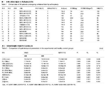 | [1] Sinha A,Twycross-Lewis R, Small C,et al. Motion analysis as an outcome measure for hip arthroplasty.Surgeon. 2011;9(5): 284-291.[2] Jones CA, Voaklander DC, Johnston DW,et al. Health related quality of life outcomes after total hip and knee arthroplasties in a community based population.J Rheumatol. 2000;27(7): 1745-1752.[3] Wylde V, Blom AW, Whitehouse SL,et al.Patient-reported outcomes after total hip and knee arthroplasty: comparison of midterm results.J Arthroplasty. 2009;24(2):210-216.[4] Kyriazis V, Rigas C.Temporal gait analysis of hip osteoarthritic patients operated with cementless hip replacement.Clin Biomech (Bristol, Avon). 2002;17(4):318-321.[5] Mayr E, Nogler M, Benedetti MG,et al. A prospective randomized assessment of earlier functional recovery in THA patients treated by minimally invasive direct anterior approach: a gait analysis study.Clin Biomech (Bristol, Avon). 2009; 24(10): 812-818. [6] Ewen AM, Stewart S, St Clair Gibson A,et al. Post-operative gait analysis in total hip replacement patients-a review of current literature and meta-analysis.Gait Posture. 2012;36(1): 1-6. [7] Beaulieu ML, Lamontagne M, Beaulé PE.Lower limb biomechanics during gait do not return to normal following total hip arthroplasty.Gait Posture. 2010;32(2):269-273.[8] Wylde V, Blom A, Dieppe P,et al. Return to sport after joint replacement.J Bone Joint Surg Br. 2008;90(7):920-923. [9] Wright JG, Rudicel S, Feinstein AR. Ask patients what they want. Evaluation of individual complaints before total hip replacement.J Bone Joint Surg Br. 1994;76(2):229-234.[10] Nadzadi ME, Pedersen DR, Yack HJ,et al. Kinematics, kinetics, and finite element analysis of commonplace maneuvers at risk for total hip dislocation. J Biomech. 2003; 36(4):577-591.[11] Broström EW, Esbjörnsson AC, von Heideken J,et al. Gait deviations in individuals with inflammatory joint diseases and osteoarthritis and the usage of three-dimensional gait analysis.Best Pract Res Clin Rheumatol. 2012;26(3):409-422. [12] Queen RM, Appleton JS, Butler RJ,et al.Total Hip Arthroplasty Surgical Approach Does Not Alter Postoperative Gait Mechanics One Year After Surgery.PM R. 2013.Epub ahead of print][13] Shoji T, Yasunaga Y, Yamasaki T,et al. Bony impingement depends on the bone morphology of the hip after total hip arthroplasty.Int Orthop. 2013;37(10):1897-1903.[14] Nankaku M, Akiyama H, Kanzaki H,et al. Effects of vertical motion of the centre of mass on walking efficiency in the early stages after total hip arthroplasty.Hip Int. 2012;22(5):521-526. [15] Varin D, Lamontagne M, Beaulé PE. Does the anterior approach for THA provide closer-to-normal lower-limb motion. J Arthroplasty. 2013;28(8):1401-1407. [16] Sander K, Layher F, Anders C,et al.Gait analysis after minimally invasive total hip arthroplasty.Orthopade. 2012; 41(5):365-376. [17] Kadaba MP, Ramakrishnan HK, Wootten ME. Measurement of lower extremity kinematics during level walking.J Orthop Res. 1990;8(3):383-392.[18] 毛玉瑢,李乐,陈正宏,等.脑卒中患者步行能力与下肢三维运动学及动力学相关性分析[J].中国康复医学杂志,2012,27(5):442-447.[19] Lugade V, Wu A, Jewett B, et al.Gait asymmetry following an anterior and anterolateral approach to total hip arthroplasty.Clin Biomech (Bristol, Avon). 2010;25(7):675-680.[20] Queen RM, Butler RJ, Watters TS,et al. The effect of total hip arthroplasty surgical approach on postoperative gait mechanics.J Arthroplasty. 2011;26(6 Suppl):66-71. [21] Lamontagne M, Beaulieu ML, Varin D,et al. Gait and motion analysis of the lower extremity after total hip arthroplasty: what the orthopedic surgeon should know.Orthop Clin North Am. 2009;40(3):397-405. [22] Madsen MS, Ritter MA, Morris HH,et al.The effect of total hip arthroplasty surgical approach on gait.J Orthop Res. 2004; 22(1):44-50.[23] Tateuchi H, Tsukagoshi R, Fukumoto Y,et al. Dynamic hip joint stiffness in individuals with total hip arthroplasty: relationships between hip impairments and dynamics of the other joints.Clin Biomech (Bristol, Avon). 2011;26(6):598-604.[24] Tateuchi H, Tsukagoshi R, Fukumoto Y,et al. Immediate effects of different ankle pushoff instructions during walking exercise on hip kinematics and kinetics in individuals with total hip arthroplasty.Gait Posture. 2011;33(4):609-614.[25] Meneghini RM, Smits SA, Swinford RR,et al. A randomized, prospective study of 3 minimally invasive surgical approaches in total hip arthroplasty: comprehensive gait analysis.J Arthroplasty. 2008;23(6 Suppl 1):68-73. [26] Tanaka R, Shigematsu M, Motooka T,et al. Factors influencing the improvement of gait ability after total hip arthroplasty.J Arthroplasty. 2010;25(6):982-985.[27] Chiu SL, Lu TW, Chou LS.Altered inter-joint coordination during walking in patients with total hip arthroplasty.Gait Posture. 2010;32(4):656-660. [28] Bennett D, Humphreys L, O'Brien S,et al. Gait kinematics of age-stratified hip replacement patients--a large scale, long-term follow-up study.Gait Posture. 2008;28(2):194-200. [29] Ritter MA, Harty LD, Keating ME,et al.A clinical comparison of the anterolateral and posterolateral approaches to the hip.Clin Orthop Relat Res. 2001;(385):95-99.[30] McCrory JL, White SC, Lifeso RM.Vertical ground reaction forces: objective measures of gait following hip arthroplasty. Gait Posture. 2001;14(2):104-109.[31] Rathod PA, Orishimo KF, Kremenic IJ,et al. Similar Improvement in Gait Parameters Following Direct Anterior & Posterior Approach Total Hip Arthroplasty.J Arthroplasty. 2013. [Epub ahead of print][32] Nantel J, Termoz N, Vendittoli PA,et al. Gait patterns after total hip arthroplasty and surface replacement arthroplasty.Arch Phys Med Rehabil. 2009;90(3):463-469.[33] Vissers MM, Bussmann JB, de Groot IB,et al.Walking and chair rising performed in the daily life situation before and after total hip arthroplasty. Osteoarthritis Cartilage. 2011; 19(9):1102-1107. [34] Miki H, Sugano N, Hagio K,et al. Recovery of walking speed and symmetrical