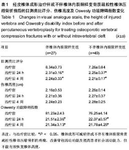 | [1] Keen RW.Burden of osteoporosis and fractures.Curr Osteoporos Rep.2003;1:66-70. [2] Mirovsky Y,Anekstein Y,Shalmon E,et al.Intradiscal cement leak following percutaneous vertebroplasty.Spine (Phila Pa 1976).2006;31(10):1120-1124.[3] Felsenberg D,Silman AJ,Lunt M,et al.Incidence of vertebral fracture in Europe:results from the European prospective osteoporosis study(EPOS).J Bone Miner Res.2002; 17: 716-724.[4] Kostuik JP,Errico TJ,Gleason TF.Techniques of internal fixation fordegenerative conditions of the lumbar spine.Clin Orthop Relat Res.1986;203:219-231. [5] Garfin SR, Yuan HA, Reiley MA.New technologies in spine:kyphoplasty and vertebroplasty for the treatment of painful osteoporotic compression fractures.Spine (Phila Pa 1976). 2001;26(14):1511-1515.[6] Li KC,Li AF,Hsieh CH,et al.Transpedicle body augmenter in painful osteoporotic compression fractures.Eur Spine J.2007; 16:589-598.[7] 谢恩,郝定均.经皮椎体成形术治疗长期疼痛的椎体裂隙的骨质疏松性椎体压缩性骨折的研究[J].美中国际创伤杂志,2012, 11(5):10.[8] Kim YJ, Lee JW, Kim KJ, et al. Percutaneous vertebroplasty for intravertebral cleft: analysis of therapeutic effects and outcome predictors.Skeletal Radiol. 2010;39(8):757-766. [9] 张子东,赵洪全,郝洪涛.椎体缺血性压缩骨折的X线、CT及MRI表现[J].中国医学影像学杂志,2009,17(3):230-232. [10] 吴爱悯,倪文飞,池永龙.椎体内裂隙征的形成机理、影像学特征及手术治疗[J].脊柱外科杂志,2012,10(1):56-59. [11] 关辉,张瑞娟,王明娣,等.在医学影像学技术引导下经皮穿刺椎体成形术治疗老年骨质疏松性压缩性骨折的疗效研究[J].中国医学装备,2009,6(10):48-49.[12] 陈施展,张聪,姚一民,等.三维CT与C型臂X线机引导椎体成形术治疗椎体骨质疏松性骨折的比较分析[J].颈腰痛杂志,2012, 33(4): 291-294.[13] 林二虎,镇万新.椎体成形术的研究和进展方向[J].中国骨肿瘤骨病,2007,6(2):102.[14] Majd ME,Farley S,Holt RT.Preliminary outcomes and efficacy of the first 360 consecutive kyphoplasties for the treatment of painful osteoporotic vertebral compression fractures.Spine J.2005;5(3):244-255.[15] Gill JB,Kuper M,Chin PC,et al.Comparing pain reduction following kyphoplasty and vertebroplasty for osteoporotic vertebral compression fractures.Pain Physician.2007;10(4): 583-590.[16] 纪泉,张良,王强,等.椎体成形术与椎体后凸成形术治疗骨质疏松性椎体压缩骨折的疗效比较[J].中华骨质疏松和骨矿盐疾病杂志, 2013,3(1):28-33.[17] Libicher M,Appeh A,Berger I,et al.The intravertebral vacuum phenomen as specific sign of osteonecrosis in vertebral compression fractures: results from a radiological and histological study.Eur Radiol.2007;17(9):2248-2252.[18] Malghem J,Maldague B,Labaisse MA,et al.Intravertebral vacuum cleft:changes in content after supine positioning. Radiology.1993;187:483-487.[19] Oka M,Matsusako M,Kobayashi N,et al.Intravertebral cleft sign on fat•-suppressed contrast•-enhan ced MR: correlation with cementdistribution pattern on percutaneous vertebroplasty. Acad Radiol.2005;12:992-999.[20] Linn J,Birkenmaier C,Hoffmann RT,et al.The intravertebal cleft in acute osteoporotic fractures:fluid in magnetic resonance imaging-vacuum in computed tomography? Spine(Phila Pa 1976).2009;34(2):E88-93.[21] Hasegawa K,Homma T,Uchiyama S,et al.Vertebral pseudarthrosis in the osteoporotic spine.Spine (Phila Pa 1976).1998;23(20):2201-2206.[22] 沈建雄,张智海,邱贵兴.椎体成形术对椎体骨质疏松性压缩骨折的疗效观察[J].脊柱外科杂志,2005,3(1):24.[23] Tayor RS,Fritzell P,Taylor RJ.Balloon kyphoplasty in the management of vertebral compression fractures :an updated systematic review and meta-analysis.Eur Spine J.2007;16: 1085-1100. [24] McKiernan F,Faciszewski T,Jensen R.Does vertebral height restoration achieved at vertebroplasty matter?J Vasc Interv Radiol.2005;16:973-979.[25] McKiernan F,Jensen R,Faciszewski T.The dynamic mobility of vertebral compression fractures.J Bone Miner Res.2003;18: 24-29.[26] Georgy BA.Feasibility,safety and cement leakage in vertebroplasty of osteoporotic and malignant compression fractures using ultra-viscous cement and hydraulic delivery system.Pain Physician.2012;15:223-228.[27] Robinson Y,Heyde CE,Forsth P,et al.Kyphoplasty in osteoporotic vertebral compression fractures-guidelines and technical considerations.J Orthop Surg Res.2011;6:1-8.[28] Buchbinder R,Osborne RH,Ebeling PR,et al.A randomized trial of vertebroplasty for painful osteoporotic vertebral fractures.N Engl J Med.2009;361:557-568.[29] Kallmes DF,Comstock BA,Heagerty PJ,et al.A randomized trial of vertebroplasty for osteoporotic spinal fractures.N Engl J Med.2009;361:569-579.[30] Aebi M.Vertebroplasty:about sense and nonsense of uncontrolled“controlled randomized prospective trials”.Eur Spine J.2009;18:1247-1248.[31] Bono CM,Heggeness M,Mick C,et al.North American Spine Society:Newly released vertebroplasty randomized controlled trials:a tale of two trials.Spine J.2010;10:238-240. |