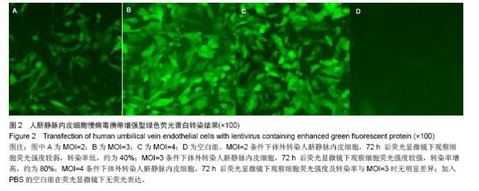 Ding Qiang, Yang Bo, Wang Le, Yin Biao, Tang Long, Zhang Bo. Transfection of human umbilical vein endothelial cells with lentivirus containing enhanced green fluorescent protein[J]. Chinese Journal of Tissue Engineering Research, 2014, 18(15): 2351-2356.