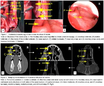 RESULTS AND CONCLUSION: The nasal septum is located on both sides of the nasal cavity. The lateral wall of rabbit nasal is composed of maxillary turbinate, middle turbinate, the inside of the middle turbinate and inferior turbinate. The maxillary sinus cavity is the largest one and ethmoid sinus, sphenoid sinus and frontal sinus are relatively much smaller. All these sinuses are paired and symmetrical. The rhino-sinus in rabbit is displayed clearly in CT scan. The anatomical location of rabbit is similar to that of human; however, the maxillary sinus of rabbit is greater than that of human correspondingly, which is suitable for operating and applying to surgical anatomy and imaging analysis. The rabbit model of rhino-sinus can be applied to simulate human rhino-sinusitis.