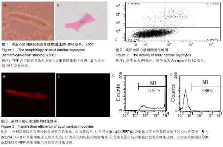 RESULTS AND CONCLUSION: A lot of cardiac myocytes were collected using the segmented enzyme digestion method. Flow cytometric analysis showed that the survival of adult cardiomyocytes was (87.03±0.70)%. Compared with liposomal transfection (transfection efficiency was 0), adenovirus infection efficiency was (70.31± 1.39)%, and the cells expressed red fluorescence under fluorescence microscope. After 4 days of adenovirus infection, transfected cells expressed hypoxia-inducible factor-1a protein. These results showed that segmented enzyme digestion is a fast way to isolate adult cardiac myocytes, and recombinant adenovirus vector is a good vector to transfect cardiac myocytes.