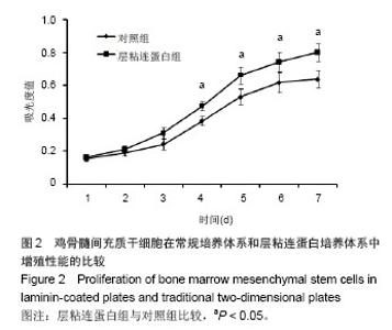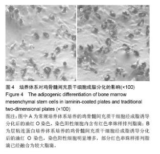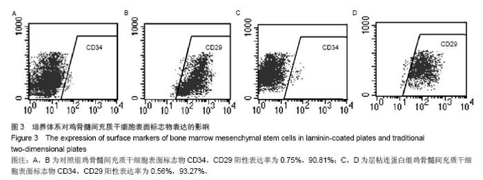 METHODS: Isolated bone marrow mesenchymal stem cells from chickens were seeded in laminin-coated plates and traditional two-dimensional plates, respectively. After expansion in vitro, the morphological characteristics, expression of surface markers, expansion characteristics and adipogenic differentiation of bone marrow mesenchymal stem cells in both conditions were analyzed and compared.